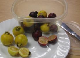 Julia, my team leader, brought me these guavas from her garden. Both the yellow and red fruit tasted like regular guavas, only slightly lemony.