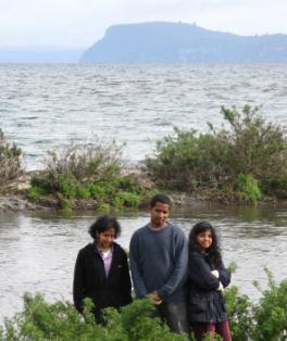 P, T, and L with Lake Taupo in the background