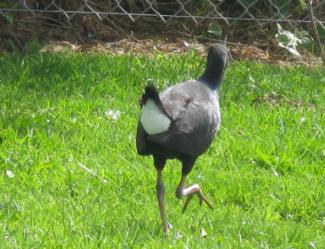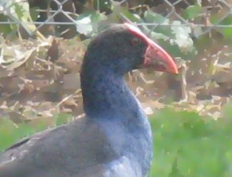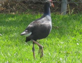 Pukeko, the New Zealand swamp hen is beautiful with its colourful beak and plumage. Its white tail catches the sunlight and flashes when the bird is alarmed.