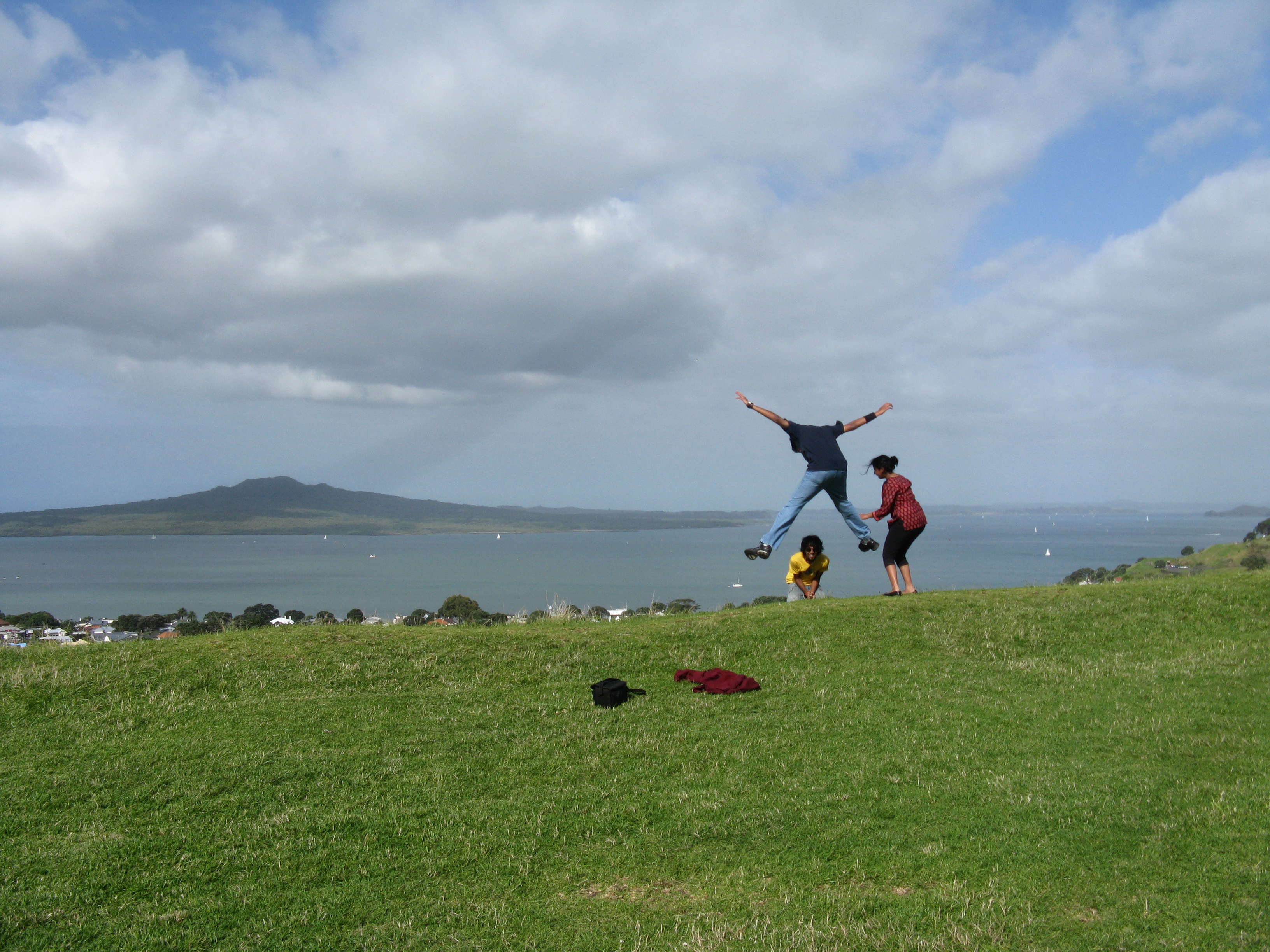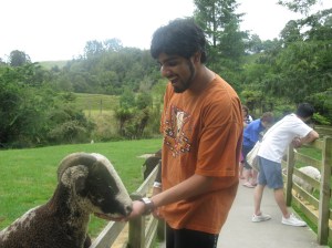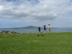 Philip took Prasanna, Prisy, Tim, and Lydia to Mt. Eden, one of the 48 volcanos that make up Auckland. Mt Eden is the highest and usually offers stunning views over the city and its harbours. But sadly today it was raining and not much could be seen.