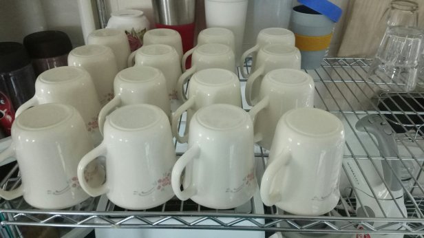 In 2005, my sister-in-law gave me a set of Corning coffee cups, which I brought with us to New Zealand.
