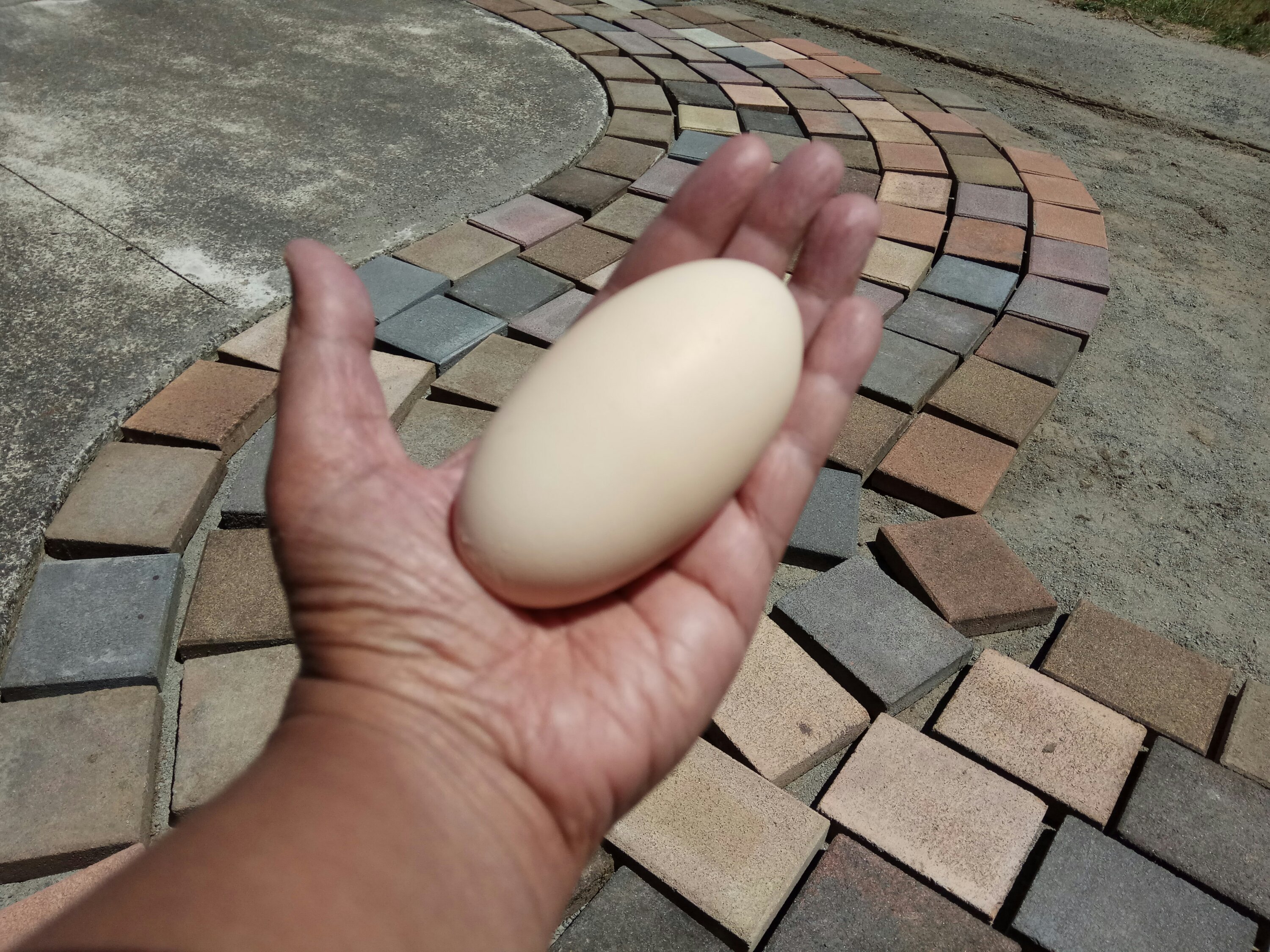 When criticising my chickens’ eggs, let’s be kind and preferably not say things in their hearing. Everyone’s been disdainful about the size of the eggs, and now look what one of them has gone and laid.