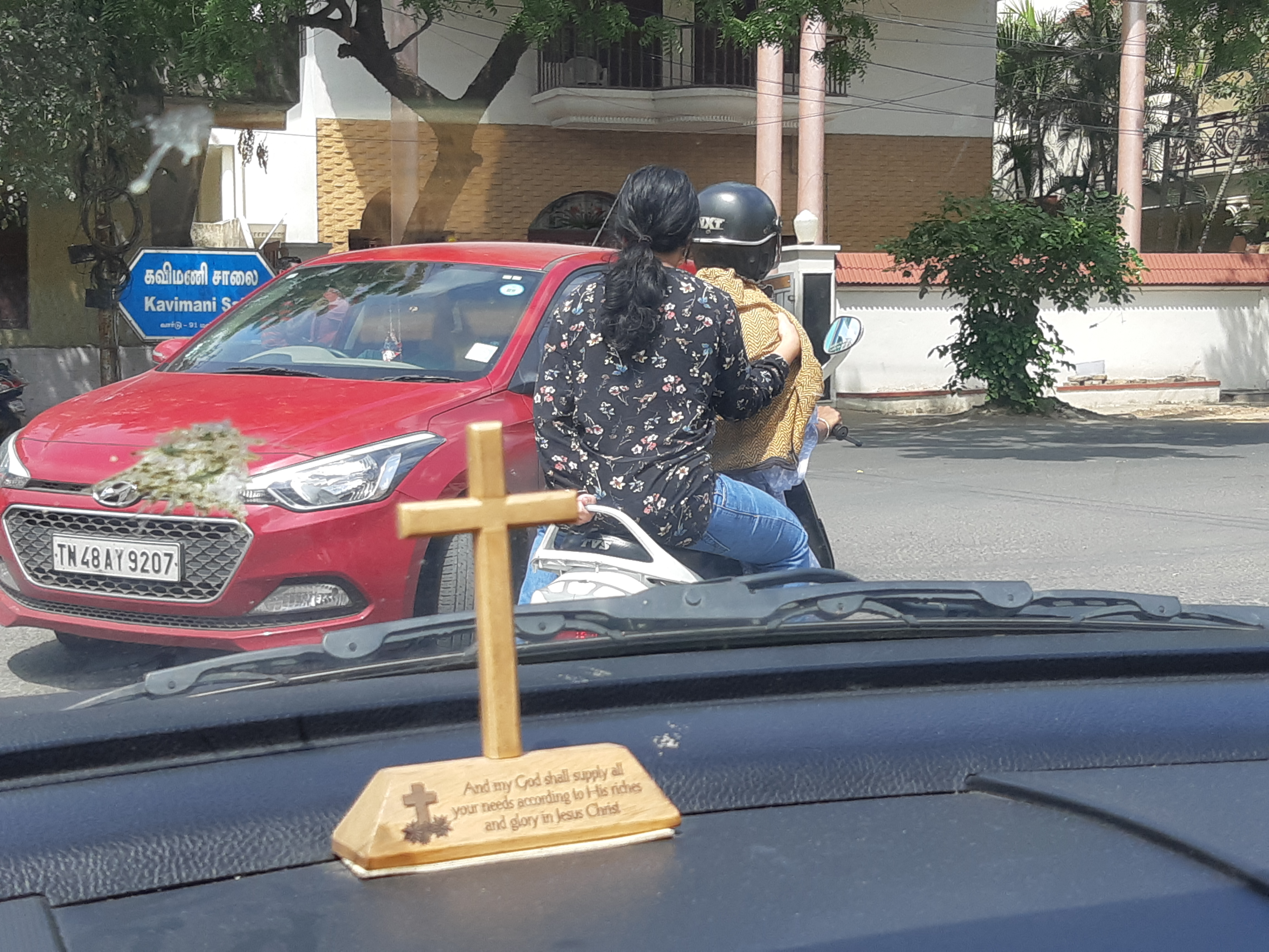 Meeting with Joe, Jothi, Jonisha, and Nirmala akka in the morning was a pleasure. We went out for lunch, after which Prisy had to return to the house with Jothi, because we could not all fit in the car. She found riding pillion rather strange, although for most people, it would be such an ordinary thing.