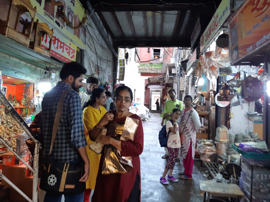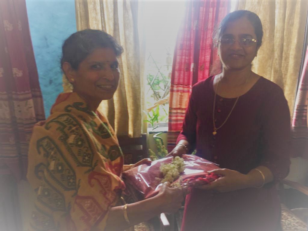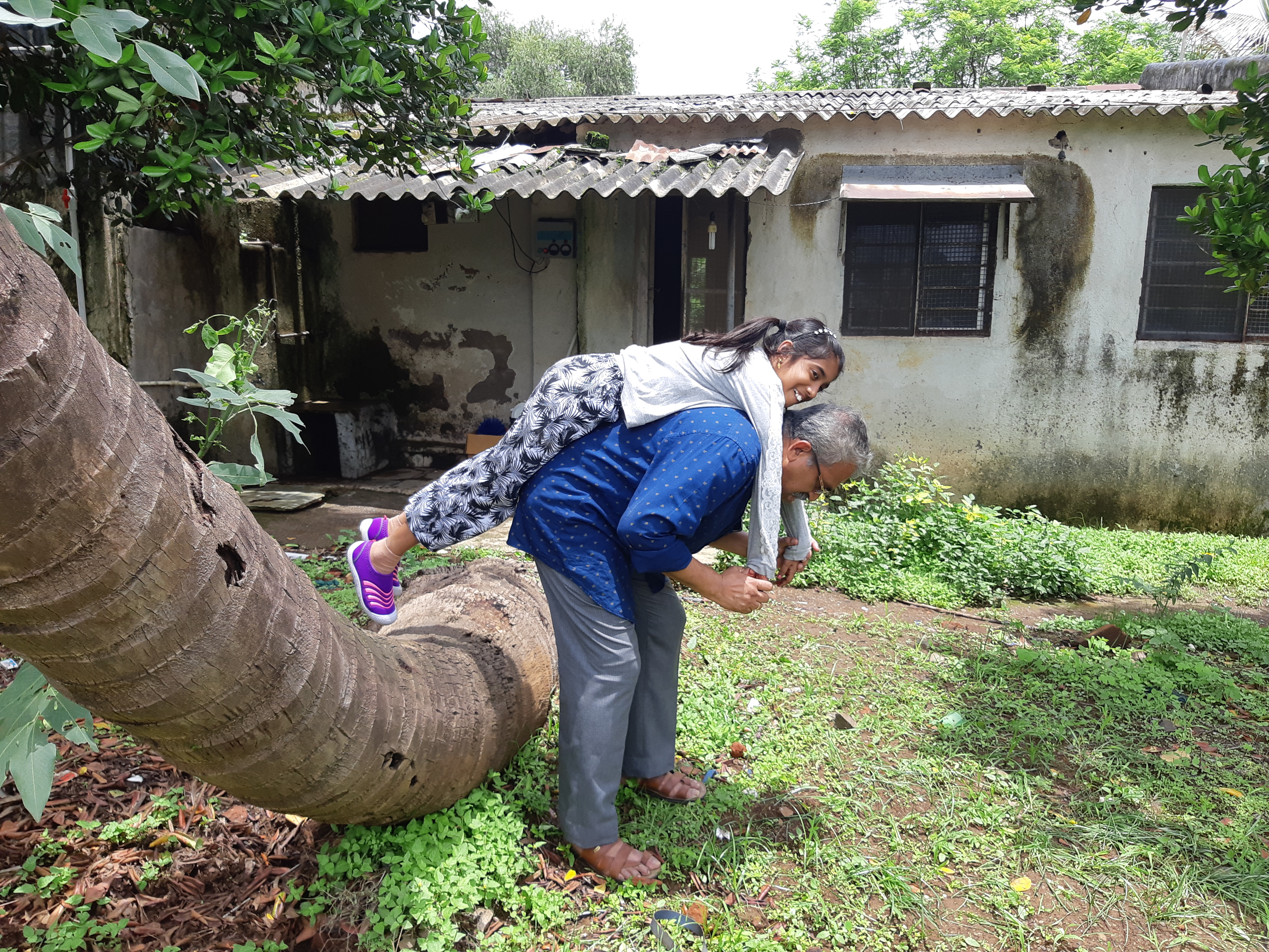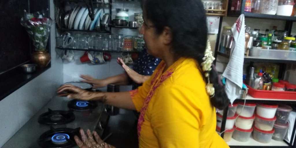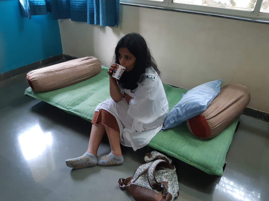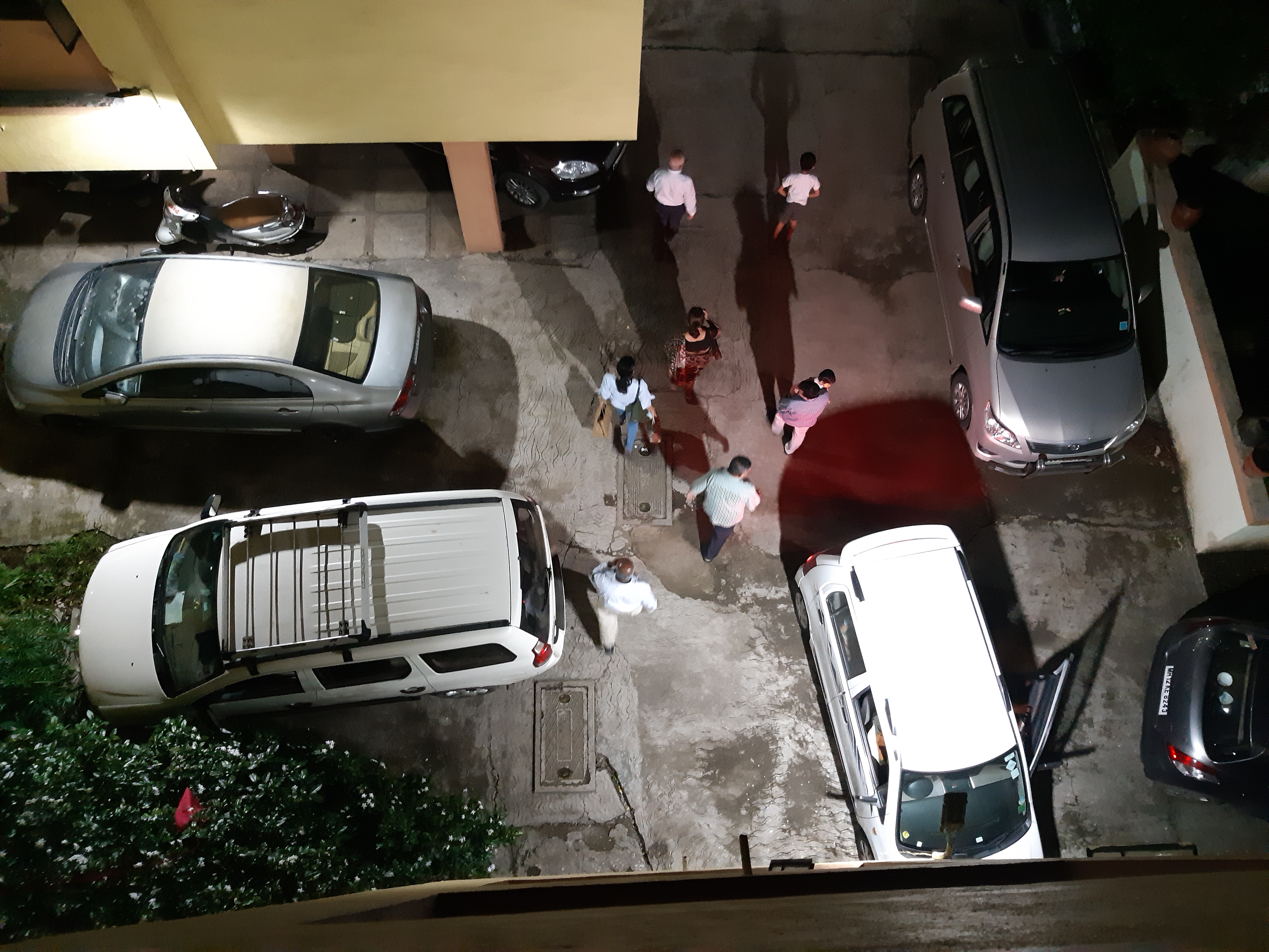 We reached Pune after midnight. (Because Pune is a defense airport, we could not take photos after landing.) Shama’s dad Vishram and their friend Sylvester Rodrigues had come with the driver to receive us. We dodged the rain as we made our way to the cars. The Bhaves had made every conceivable arrangement for our comfort. They put us up in another apartment in the same apartment complex as their own apartment. It had mattresses on the floor and some beds. That night we were transported back to our childhood when families slept together in this way, when they gathered for special occasions. We had been supplied with plenty of snacks and beverages, including bottled water. I was surprised to see an electric kettle too. We met Shama’s mum Hema and Deepika Rodrigues.