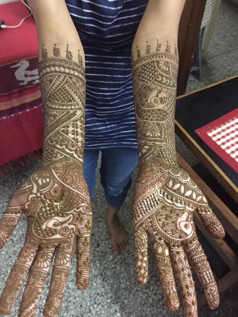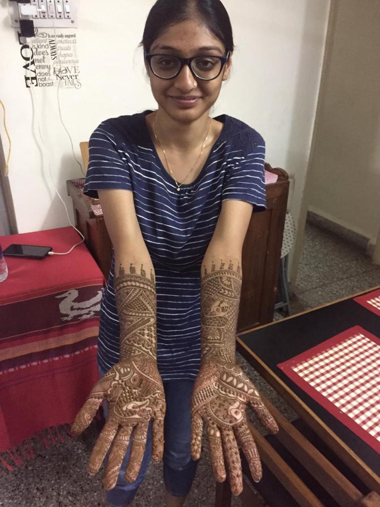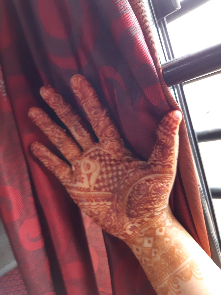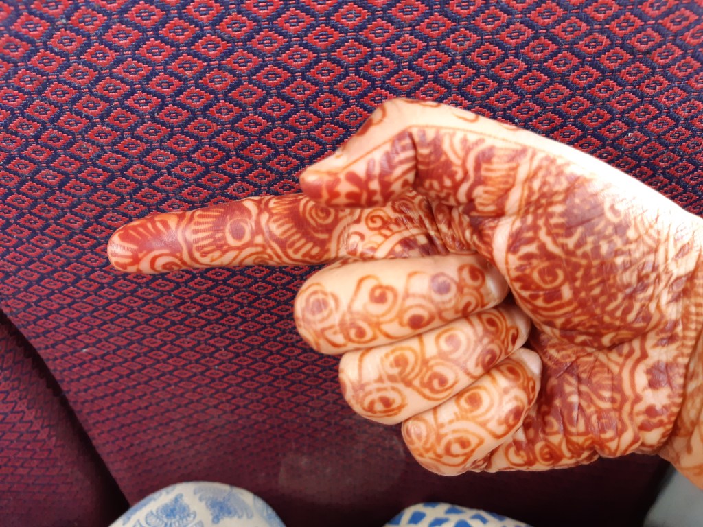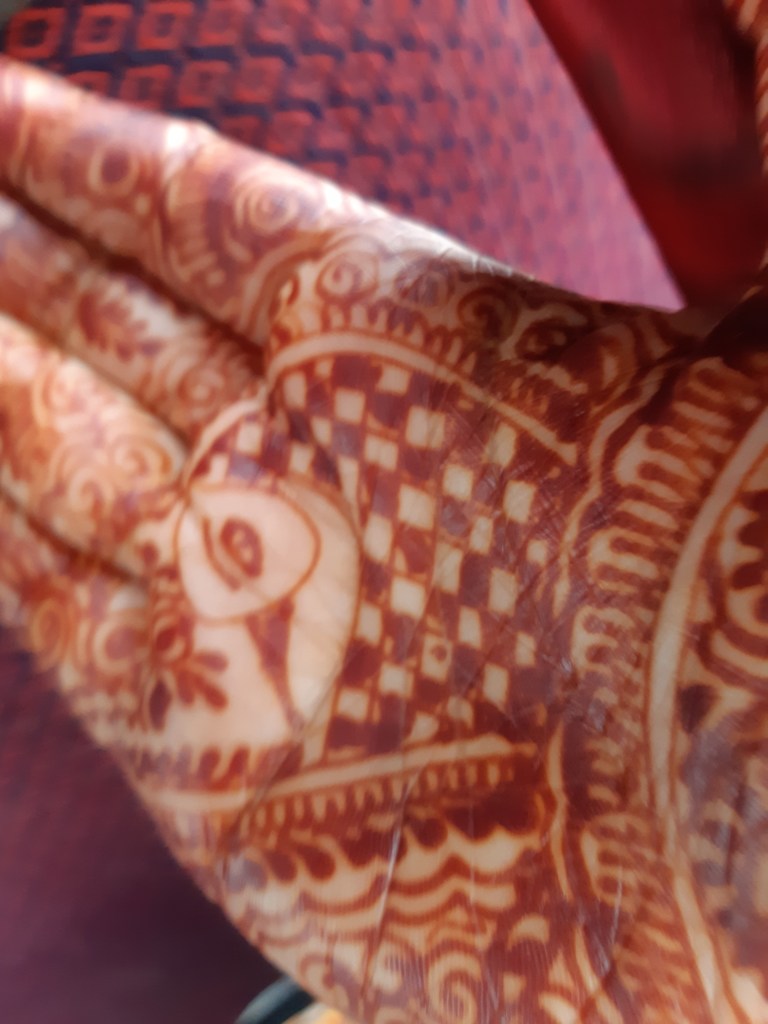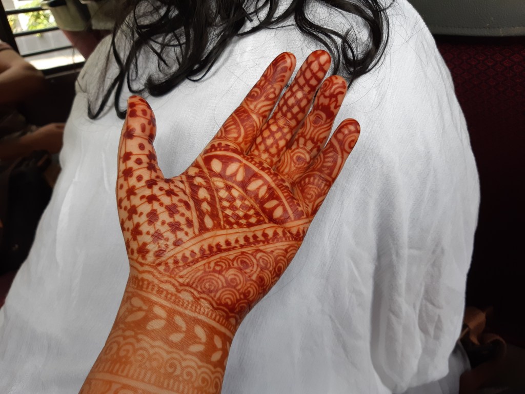 Prisy and I are delighted that the mehndi designs on our hands have turned out so well. All past efforts at this for me ended up as light-orange doodles.
