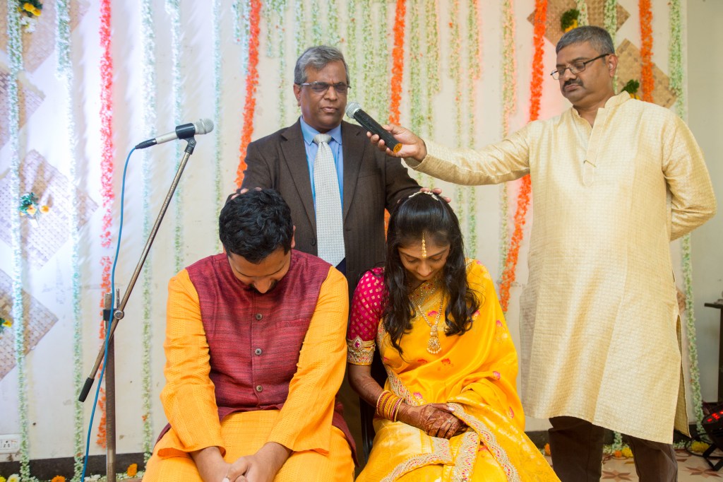 Pastor Chris Williams, Pastor of Disciples Community Church, shared from the word, with his dear wife Leena Williams translating into Marathi. He spoke about what a Christ-centred engagement looks like. After this, Tim and Shama made their commitment before the gathering. Pastor Chris then committed the couple to the Lord.