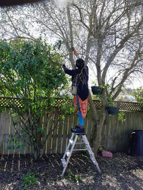 Ruby, my son in law’s mum, and I wanted to get a roosting perch sorted for the hens. So we took turns at using the hack saw to procure it and be able to quite literally offer them the olive branch.