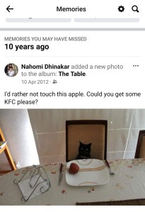 Trust Facebook to remind you of things like this. I am glad we have this picture of Millie seated sedately at our table.