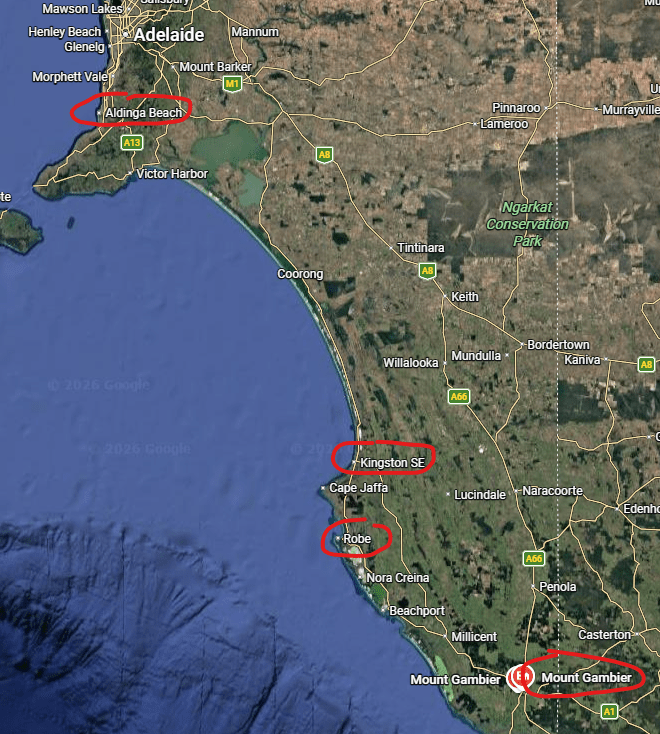 It was Goodbye to Robe after a visit to The Pastry Shop at Robe’ and the old 1861 gaol.