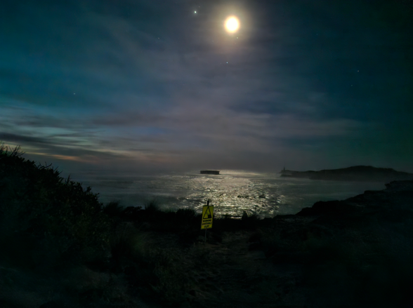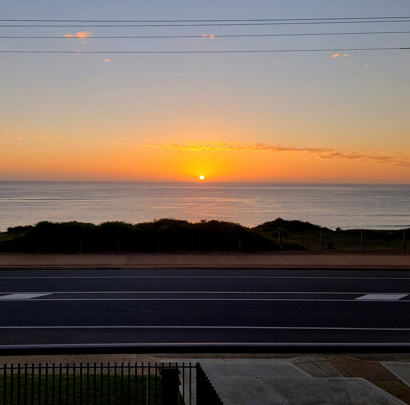 We got back to Aldinga to another beautiful sunset. After the sun went down, we went out for a walk on the sidewalk looking down at the shoreline.