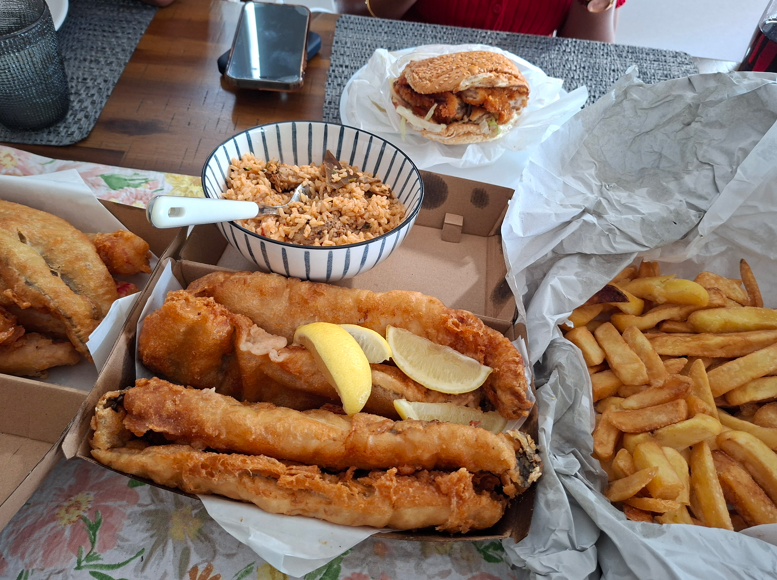 We paid a visit to the Aldi Supermarket and to a fish-and-chips takeaway.