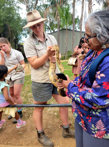 It was GorgeWildlife Park next, where we got to see some animals. I held a snake and we fed the camels, wallabies, and kangaroos. We saw wombats for the first time.