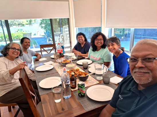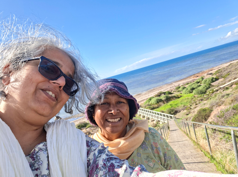 We drove to their holiday home in Aldinga. Gladys, was there along with her sister Susie and daughter Sneha. Meeting up with them was the main purpose of the trip. We all had lunch together. Lunch comprised Benji”s Ambur biriyani, Sneha’s ghee rice, Gladys’s egg curry, and Susie’s tuna cutlets.